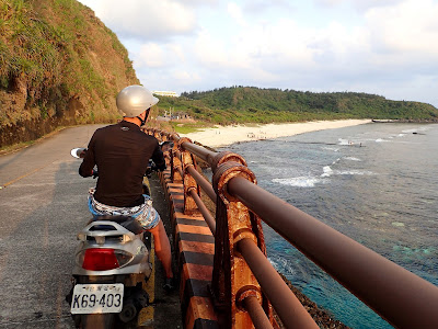 一條環島公路將綠島畫一個圓圈,西半部是筆直的平路,而東半部則是蜿蜒的山區,17公里的路程,騎機車只需要一小時便足以繞島一圈,整座島嶼便能輕易走透。原本打算找一天清晨,跑步繞島一圈,但每天都因為彈簧床過於舒適而無法順利起床。來綠島的遊客,大致上分為三類,第一種是像我們這種漫無目標、隨意在陸地上晃晃的觀光客,第二種是專門來這裡探索海底世界或是學習潛水技能的潛客。第三種就是打扮得美美的 花大量的時間取景拍照的正妹。不管是哪一種,綠島的海岸線都是大家不會錯過的地方。
